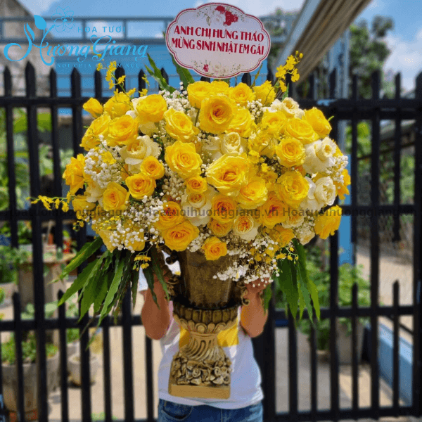 Hãy cùng Hoa Tươi Hương Giang tham khảo Bình Hoa Tone Vàng – HH 02 ngay bên dưới nhé: