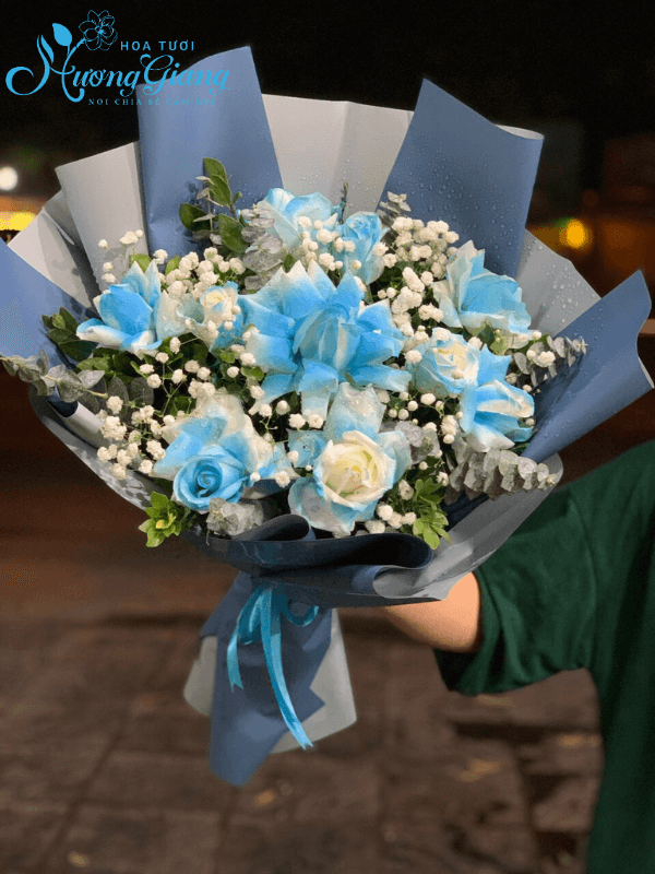 Bó Hoa Mượt Mà mang trong màu xanh hấp dẫn từ cái nhìn đầu tiên sẽ là món quà vô cùng đặc biệt dành tặng thích sự mới trẻ trung, năng động. Bó Hoa Mượt Mà được thiết tinh tế từ những bồng hoa hồng xanh kết hợp những bồng Baby trắng nhỏ nhắn xinh xắn đã tạo một bó hoa hết sức đặc biệt khi bạn dành tặng đến người nhận.