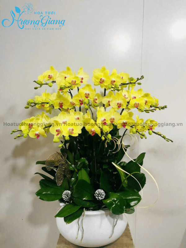 Hãy cùng Hoa Tươi Hương Giang tham khảo Chậu Lan Hồ Điệp Vàng 15 Cành – LHĐ 34 ngay bên dưới nhé:
