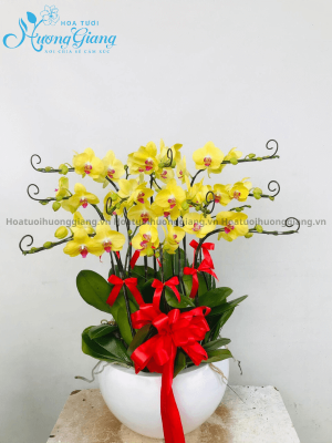 Hãy cùng Hoa Tươi Hương Giang tham khảo Chậu Lan Hồ Điệp Vàng 15 Cành – LHĐ 34 ngay bên dưới nhé: