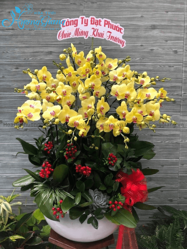 Chậu Lan Hồ Điệp Vàng 19 Cây – LHĐ 011 với vẻ đẹp riêng và sang trọng của mình, Lan Hồ Điệp luôn được chọn làm món quà cho những dịp đặc biệt như chúc mừng, thăng chức, sinh nhật, khai trương,… để thay cho tấm lòng và những lời chúc tốt đẹp nhất đến người nhận. Ngoài ra, chọn một chậu Lan Hồ Điệp đẹp để bày trí nơi tiền sảnh hoặc phòng khách sẽ khiến cho không gian trở nên sống động, không kém phần trang trọng.
