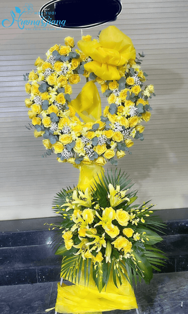 Hoa Chia Buồn đi theo tone màu vàng của hoa ly và màu vàng của hoa hồng chùa sẽ giúp bạn nói lên lời cầu nguyện dành cho người đã khuất. Vòng hoa thành kính phân ưu, hoa kính viếng luôn là niềm chia sẻ đau buồn, mất mát cho gia quyến. Hãy đến và dâng lên họ những kệ hoa chia buồn thật ấm cúng và làm giảm bớt u uất cho gia quyến.