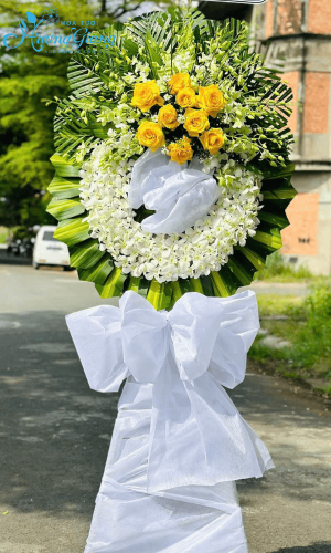 Vòng hoa tang lễ là một trong những loại hoa chia buồn phổ biến trong các nghi lễ tang lễ và đám tang ở Việt Nam. Vòng hoa được thiết kế với một khung tròn và được bao phủ bởi các loại hoa khác nhau. Mỗi loại hoa mang theo một ý nghĩa riêng và khi được kết hợp với nhau, tạo nên một vòng hoa đầy ý nghĩa và tinh tế.