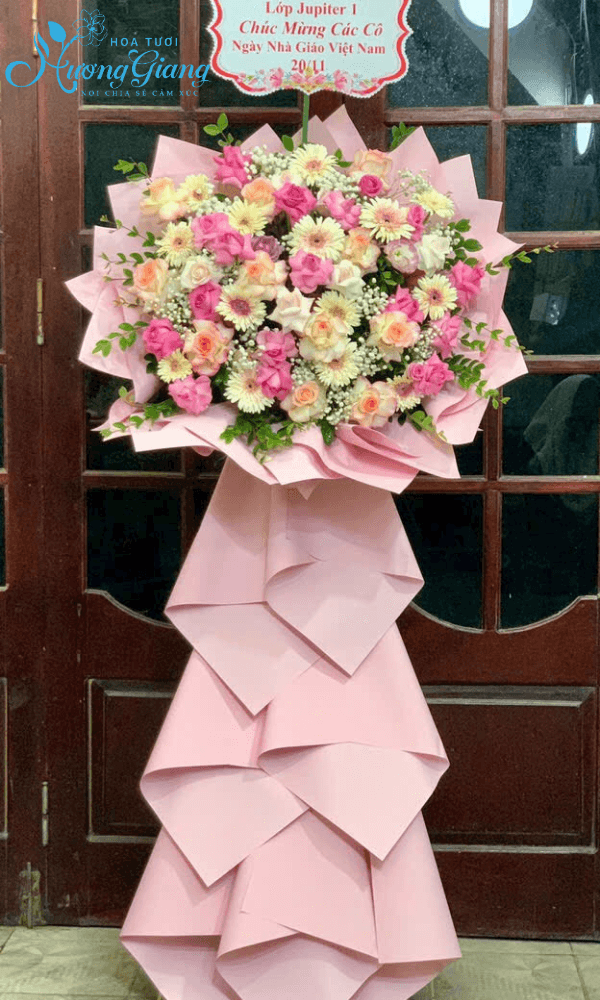 Hãy cùng Hoa Tươi Hương Giang tham khảo Kệ Hoa Chúc Mừng Tươi Tắn – KT 54 ngay bên dưới nhé: