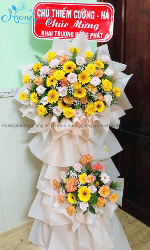 Hãy cùng Hoa Tươi Hương Giang tham khảo Kệ Hoa Khai Trương Tiền Vào – KT 32 ngay bên dưới nhé: